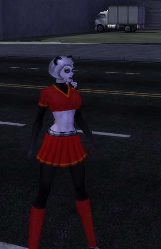 I then logged into a somewhat more-neglected character just to play a bit. She’s Bamboo Knight, a mutant schoolgirl swordswoman panda. Because I can, that’s why. Take that, WoW. She was actually rolled up a long time ago, when Dual Blades was a new powerset. I alt hop a lot, if you can’t tell by my full server list (and it’s not my only server).